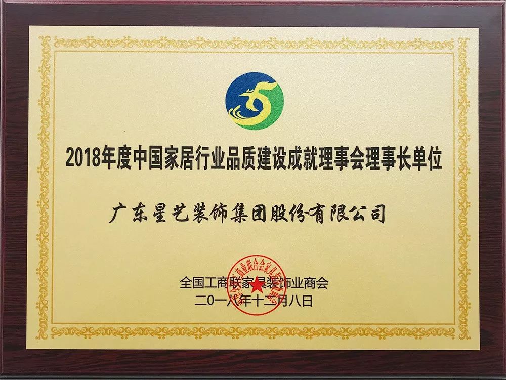 星藝裝飾當選2018年度中國家居行業(yè)品質(zhì)建設(shè)成就理事會理事長單位